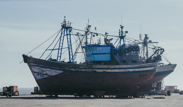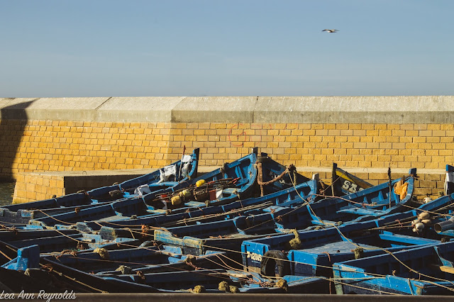 | These blue fishing boats appear to be a very popular sighting in Essaouria. Although everything is painted blue to include taxi cabs and horse buggies! |