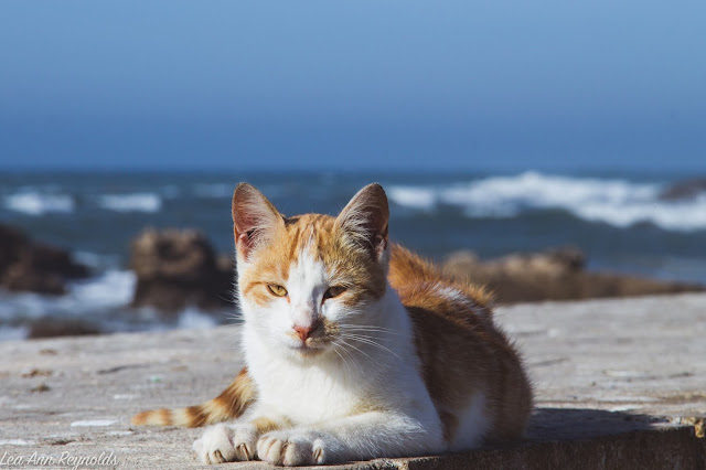 We wandered over to the fishing port and spent some time watching the massive waves crash against the rocks and I used a little kitty as my model while taking photos.