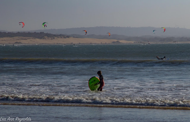 | All the kite surfers in the background! I counted over 40. We were amazed they didn’t run into each other. |