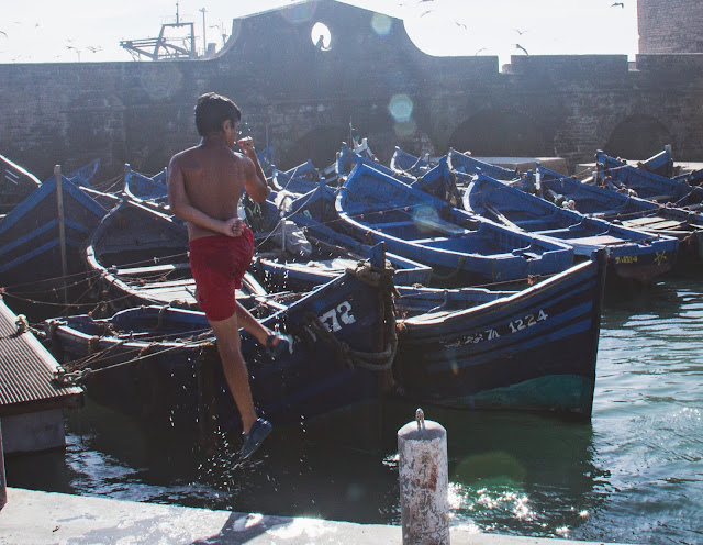 | The Moroccan boys jumping off the edge into the water. No fear! |