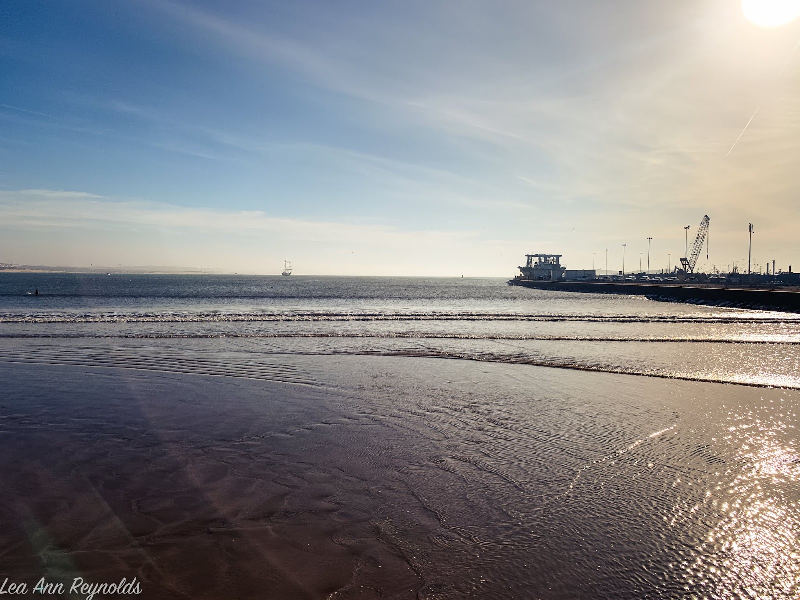 | All the kite surfers in the background! I counted over 40. We were amazed they didn’t run into each other. |