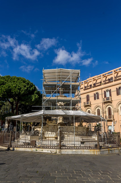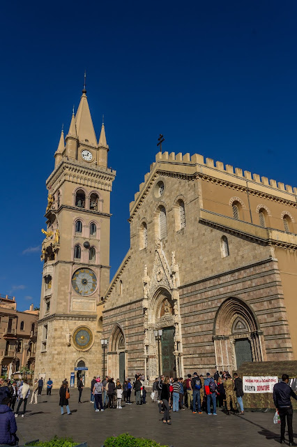Good afternoon from beautiful Sicily, Italy! Such a beautiful Italian city. It’s a little chilly but the sun and walking around made for a pleasant day. We walked over to the Piazza to see the Messina Cathedral and the Fontana de Orion, a 16th century fountain. Unfortunately, the fountain was under construction so mostly boarded up.