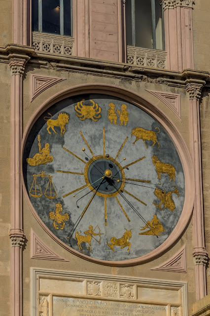 | A close up of the astronomy signs on the clock. |