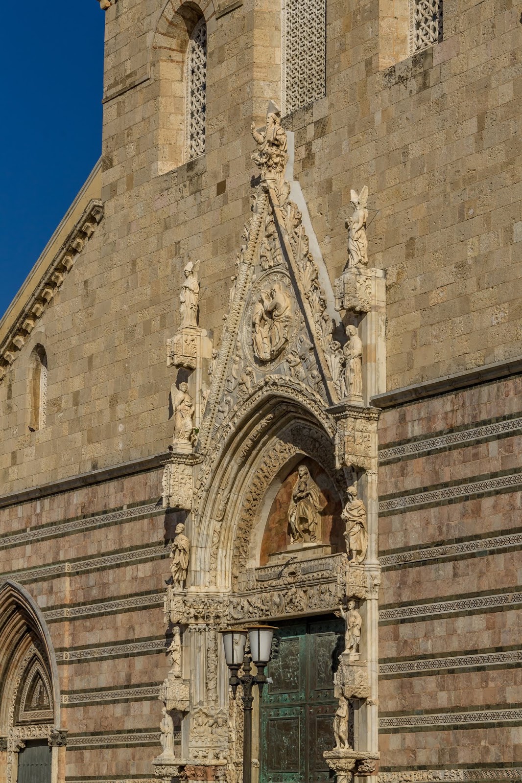 Good afternoon from beautiful Sicily, Italy! Such a beautiful Italian city. It’s a little chilly but the sun and walking around made for a pleasant day. We walked over to the Piazza to see the Messina Cathedral and the Fontana de Orion, a 16th century fountain. Unfortunately, the fountain was under construction so mostly boarded up.