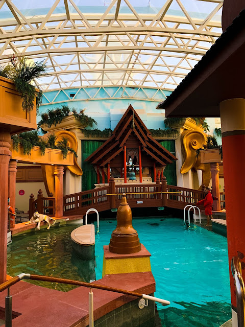 | This pool area is called the Solarium. It is for adults only and is normally very warm. However on this ship, it has been like an iceberg. We hope once we are in Dubai, the temperature inside will be better. |