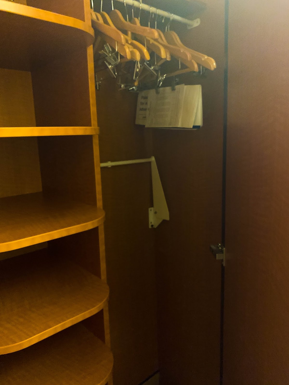 One of our rooms, we know the room number so we walked to that room to see where it was located. They happened to be cleaning the room so we peeked inside and we are thrilled it’s the same size and layout of our current room. We are so excited. You cant imagine trying to store 3 large pieces of luggage and unpack with no storage.