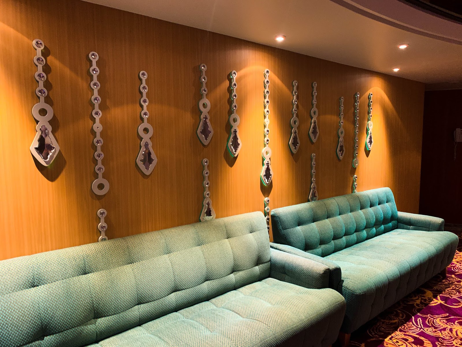| Most of the ships we have been on have chairs on each floor around the Centrum (middle of the ship). This ship has many sofas as well which we really like. |