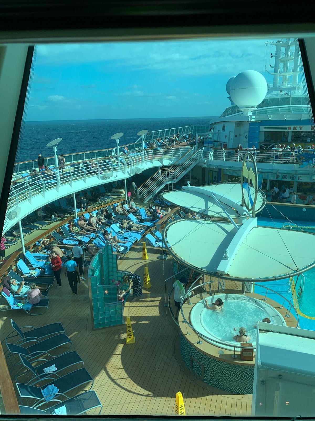 | This pool area is called the Solarium. It is for adults only and is normally very warm. However on this ship, it has been like an iceberg. We hope once we are in Dubai, the temperature inside will be better. |