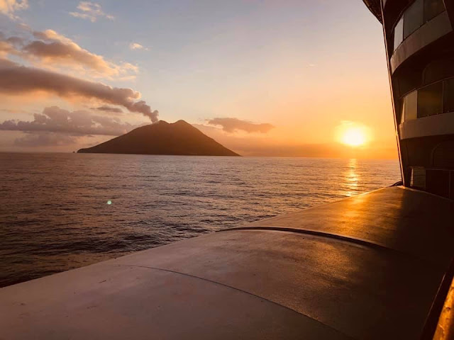| Stromboli is a small island in the Tyrrhenian Sea, off the north coast of Sicily, containing one of the three active volcanoes in Italy. |
