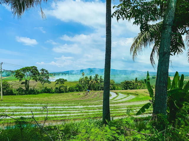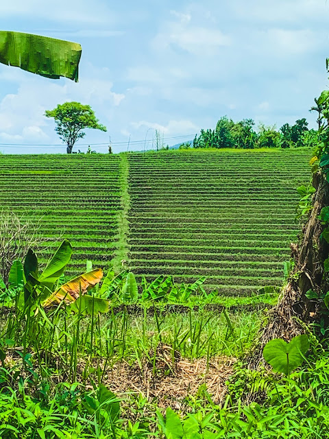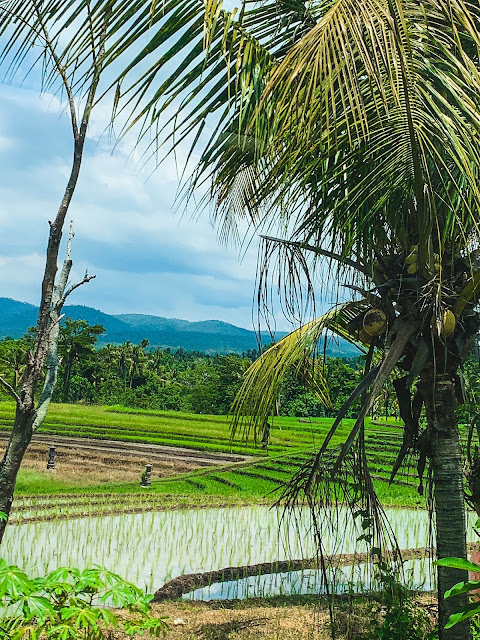 We also passed many rice paddies and one was on fire. Our driver said they burn off the old rice to plant new. They were really pretty. I took several photos as we were driving but we are going to see a plantation so I’ll have some better photos from that adventure. After we arrived at our new villa in Ubud, we had to walk about 1/4 mile down hundreds of steps just to get to the hotel/villa. I was worried Chuck wasn’t going to make it.