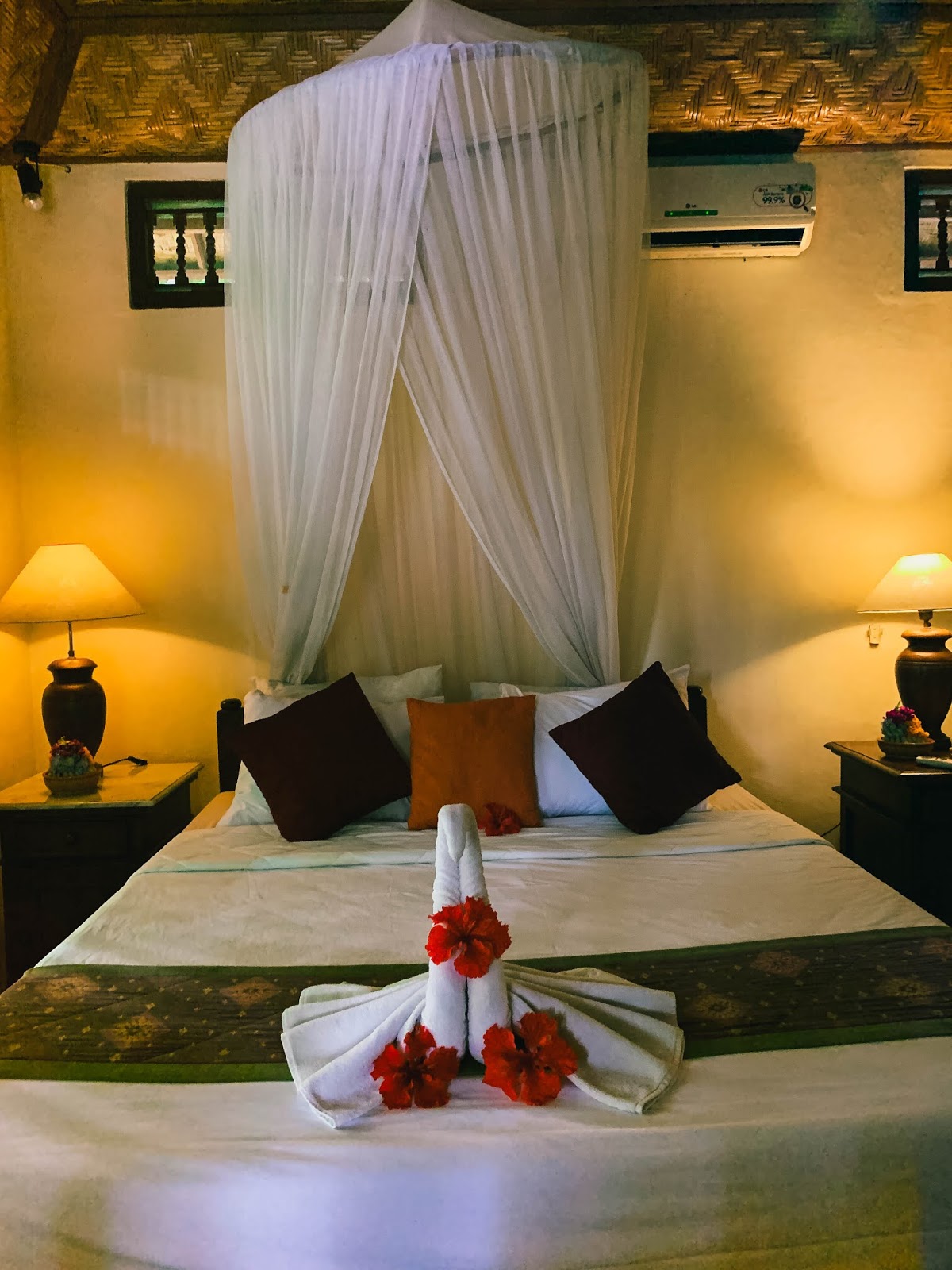 | The mosquito net wont be needed at this time, unless I get bit tonight. If that happens, it’s happening. But makes a cool decoration for the bed! The swan and fresh flowers were pretty too. |