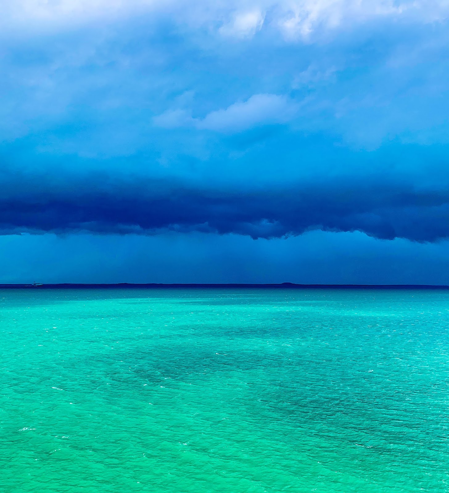 | Storms are frequent this time of year but its amazing how the colors of the coral water and the deep blue sky make a beautiful view. |