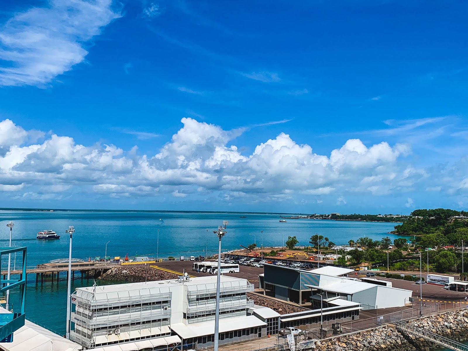 We have reached the top North end of Australia. The channels were tight between the small hills or mountains in the water, so we slowed down and the captain had to do some tricky navigating, mostly due to the reefs in the area. We passed some beautiful mountains in between some reefs.