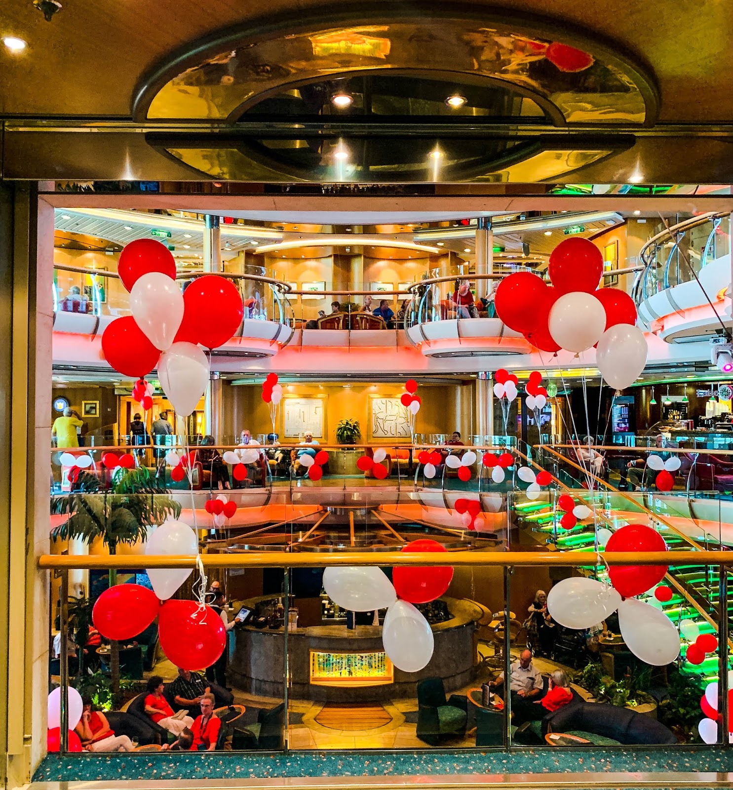 Coffee in the room (that’s a first for us, something new for Royal Caribbean) breakfast and then we decide what we’ll do in the evening which is typically the same. Attend the ships entertainment at 6:30 pm, Dinner afterwards and see a movie in the theater at 9:00 pm. Between breakfast and the evenings entertainment, we usually read, nap, play card games, swim and talk.
