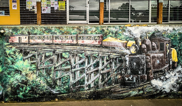 | Mural of the “puffer steam train” that is still in use today. |
