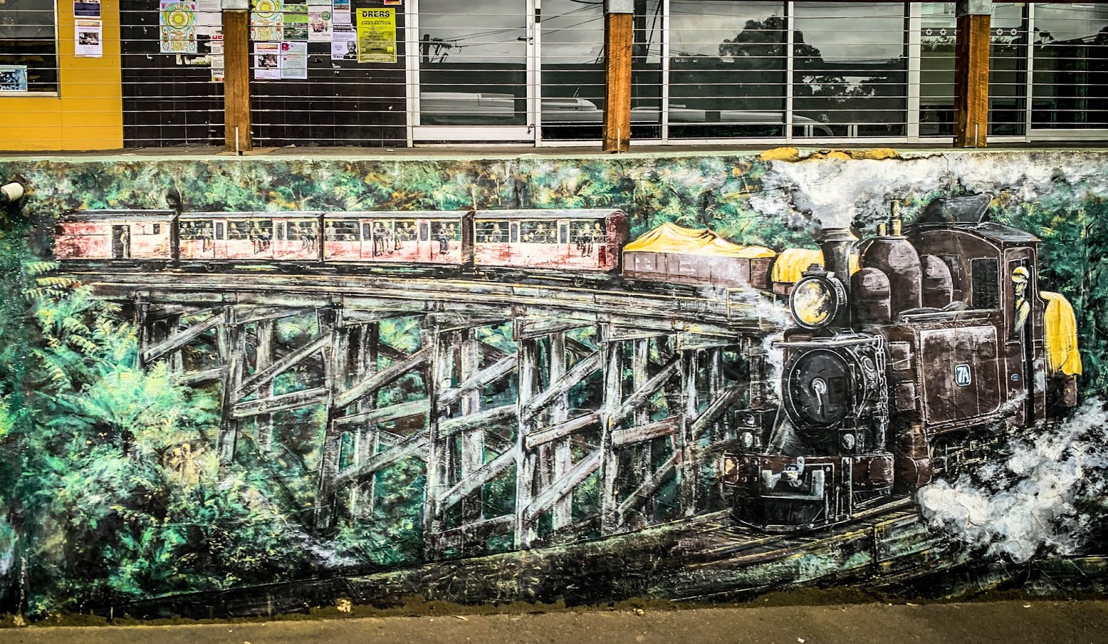 | Mural of the “puffer steam train” that is still in use today. |