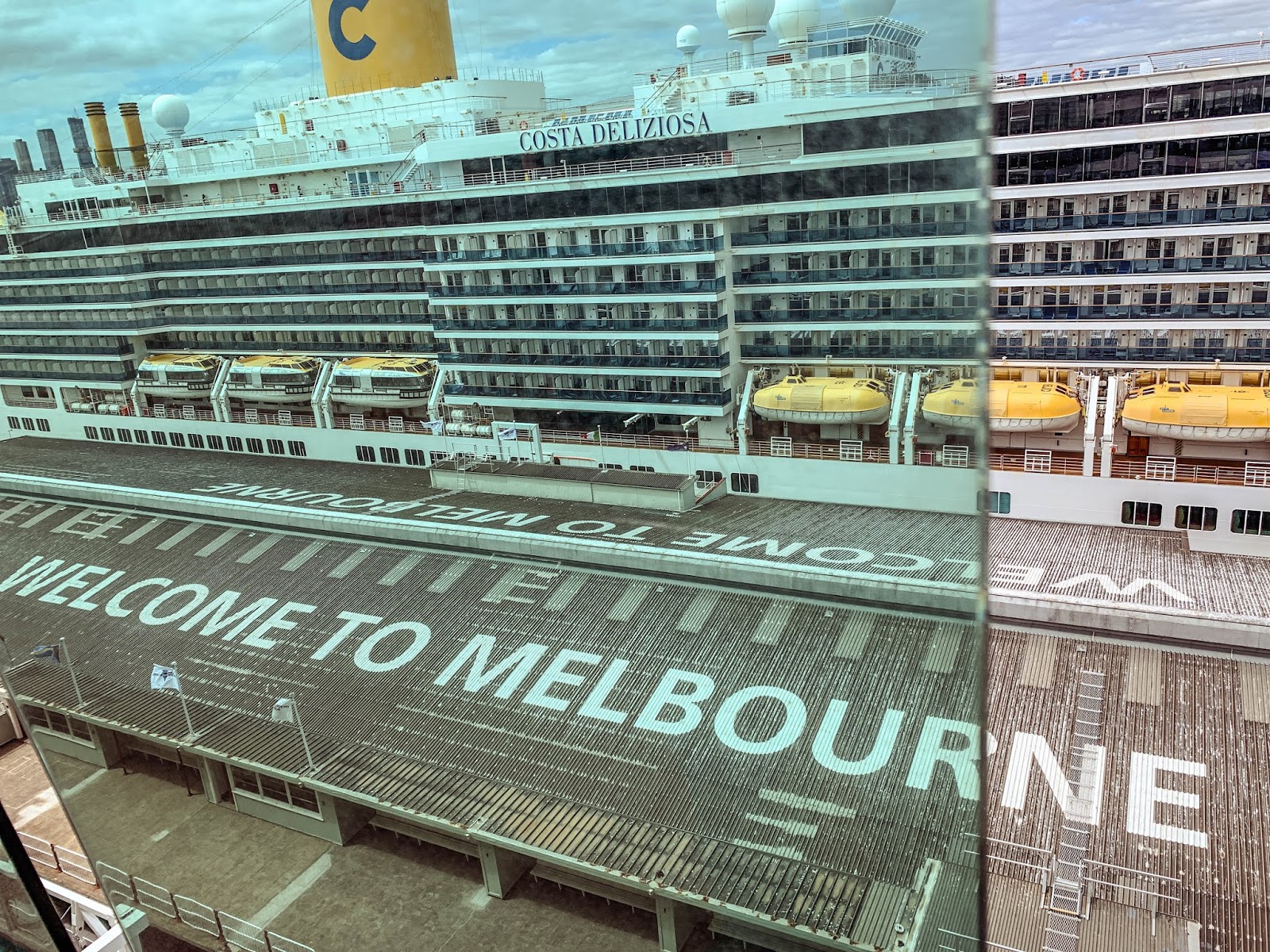 | Somehow we missed all the “Melbourne” or “Welcome to Melbourne signs and we saw this one outside the cruise terminal so we took our selfie next to it. |