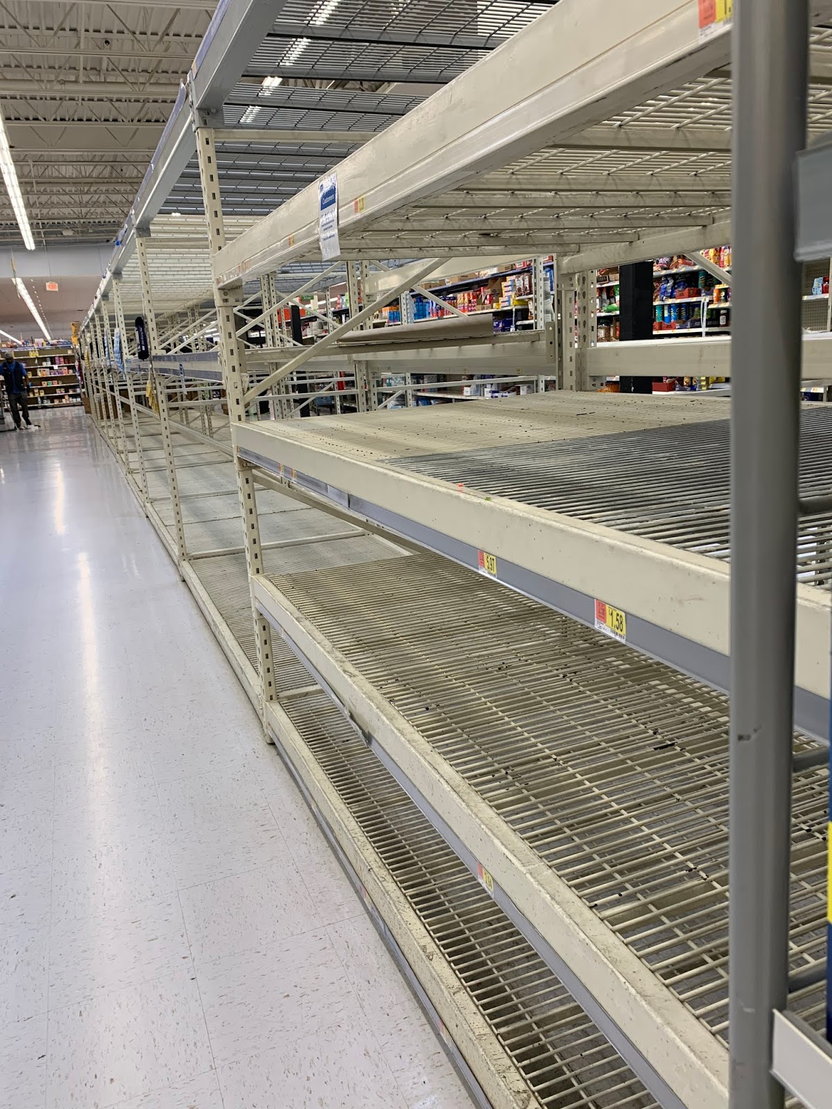 We are hunkered down here in Bedford, Texas for the next 30 days. This cute 1 bedroom apartment is just perfect for the two of us. We have Netflix and Roku to keep us busy and free WIFI so we are all set. We picked up at least 2 weeks worth of groceries yesterday at Walmart. This was our first experience in seeing what was happening that we only heard about from friends and social media.
