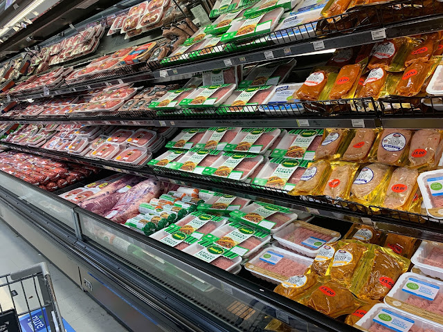 | Shelves were stocked with meat times once again. Much different than 10 days ago. |