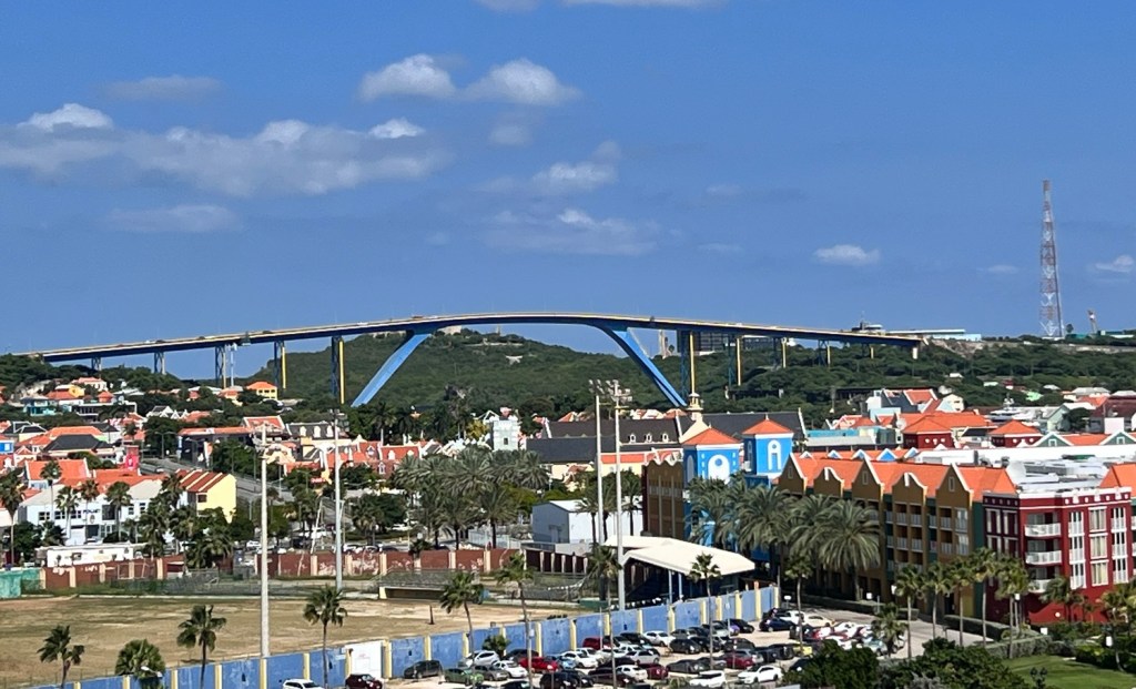 We spent a little time walking around the island. It was so hot today but not complaining. We could be back in Virginia in the snowy cold weather! We admired the beautiful Juliana Bridge during our walk. It was under construction in 1967 when a portion of it collapsed, killing 15 workers. Final construction was completed and the bridge opened in 1974.