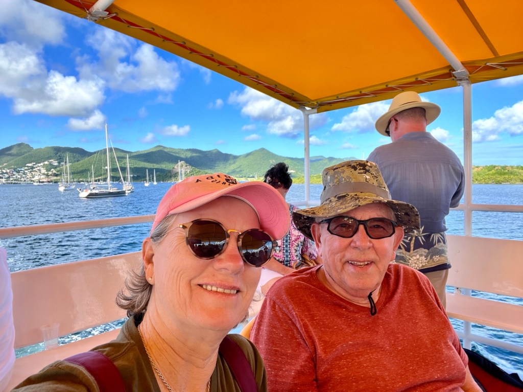 Our next four stops are with the Saints. St. Maarten, St. Kitts, St. Lucia and St. John. We have been to all four but that was back in March. I don’t believe I wrote anything in the blog about our trips. We realized after we were an hour into the excursion in St. Maarten that we have been on this exact excursion before. Oh well, it was nice to enjoy again. The ride was long due to a lot of traffic but otherwise a nice trip. It was a nice bus tour through the mountains and then a short boat ride along Marigot bay. We started out on the Dutch side of St. Maarten and then drove over to the French side, spelled differently. Sint Martin. This is where Marigot bay was located. Such beautiful homes over on that side.