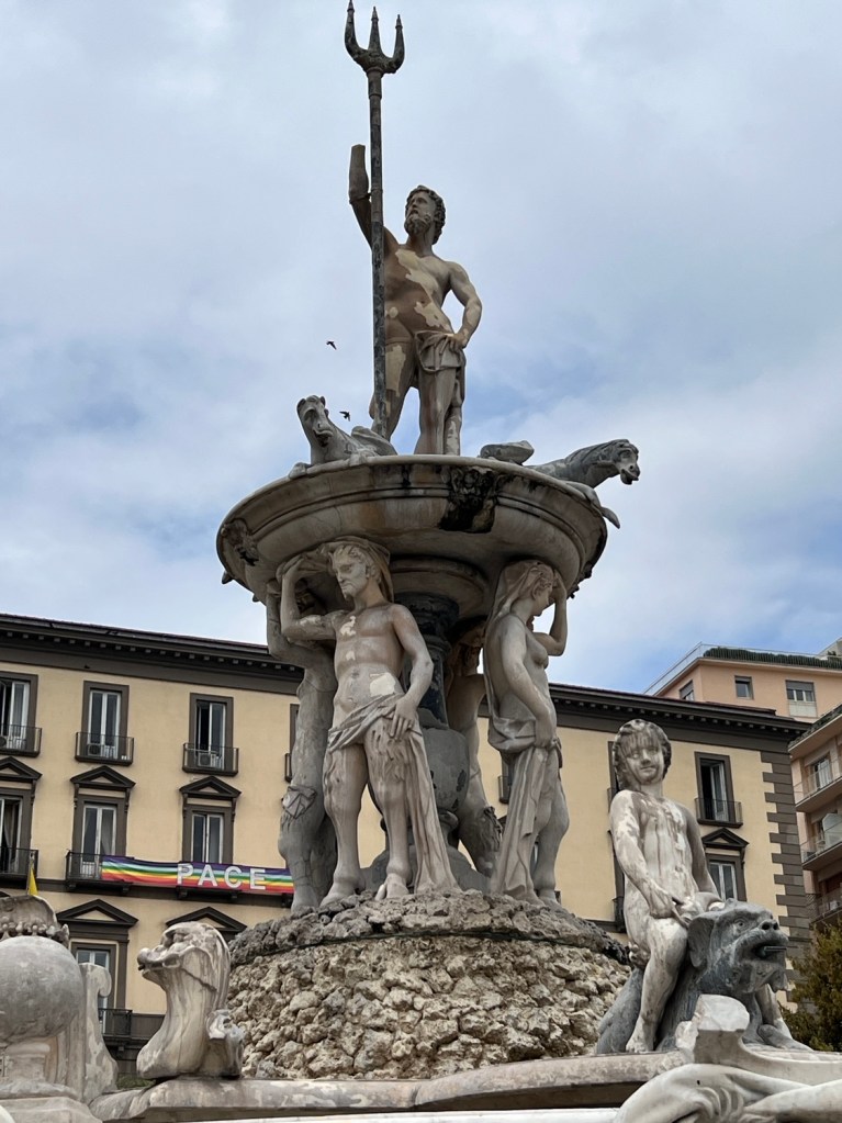 The Fountain of Neptune is also here. It was completed between 1600 and 1601. Involved in its creation were the sculptor-architects Michelangelo Naccherino, Pietro Bernini, and Cosimo Fanzago. A very beautiful and detailed fountain.