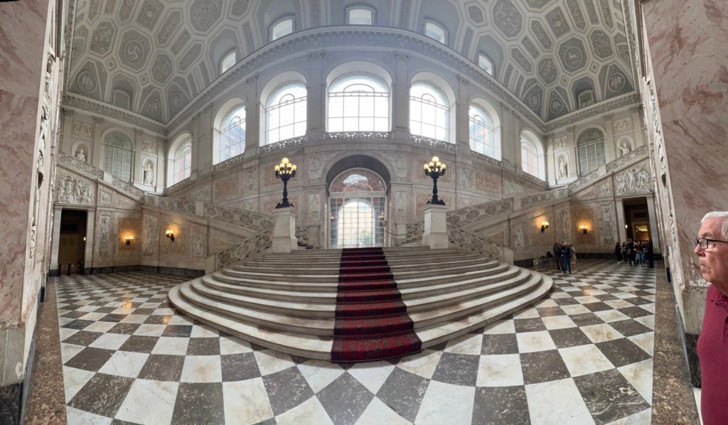 Started today with a cool, wet and dreary day in Naples Italy so we decided to wait until early afternoon to venture out. We aren’t on an excursion today so it will be a search and find scavenger type exploring with a little help from google! Around 1 pm, although overcast, the rain was gone and the temperatures were very close to 70 F. so turned out to be a very nice day. We decided to plan our day close to the port and found many areas on our list close by. We have decided to not visit Pompeii and Herculaneum because we will see them next year and not wanting to ruin the excitement. We chose the Royal Palace as our main attraction and visited the inside. It was huge! Room after room of beauty. Unlike the Buckingham palace, we were able to take photos without flash. The queen of England wouldn’t allow us to take photos while visiting her. Which, I really don’t blame her if it was her living quarters most of the time.