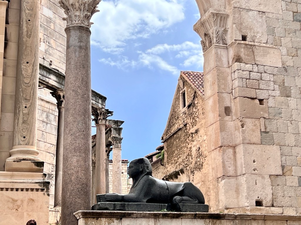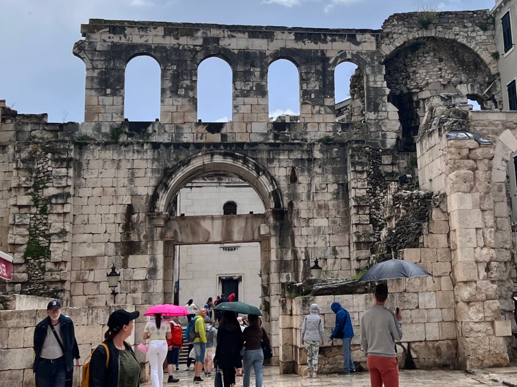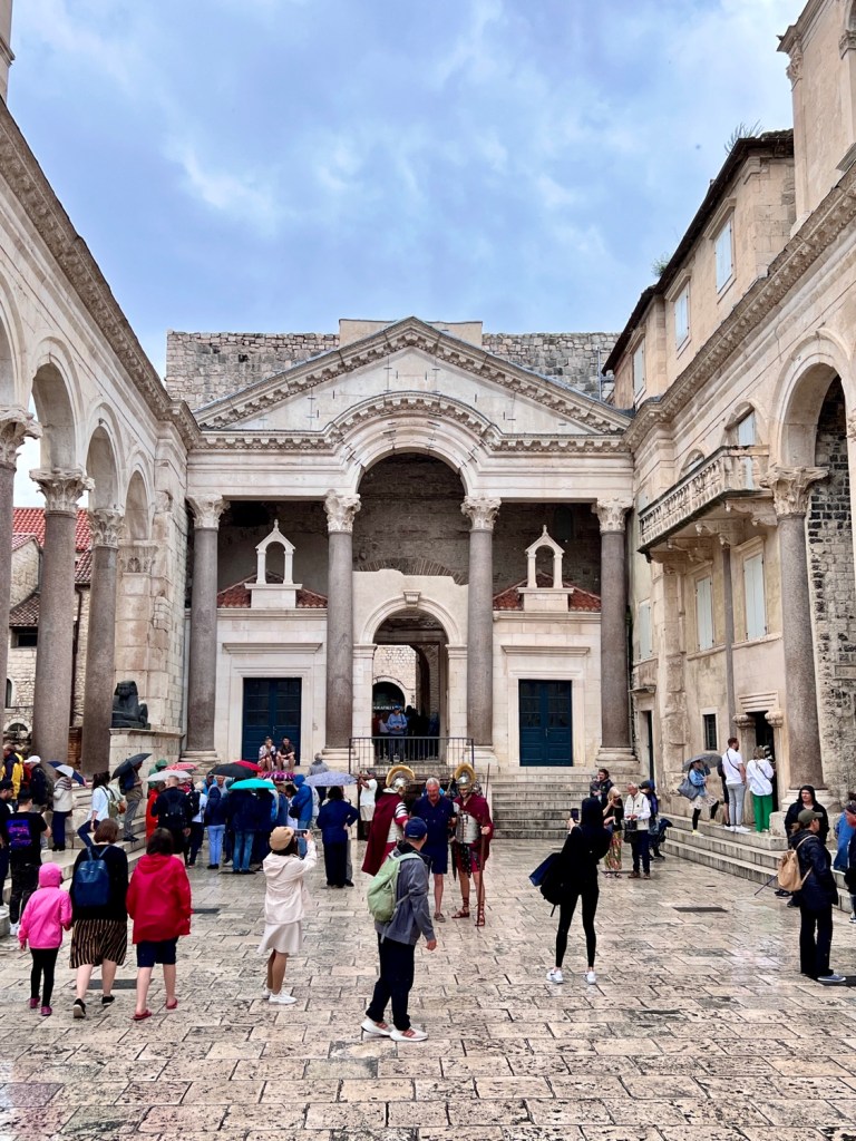 Walking through the gates we entered into the Diocletian’s Palace. Inside the palace we found several points of interest. First was the Peristyle. Here is where we first sought refuge from the rain. It is a large square surrounded by columns and it was the center of public life in the Palace. It is still used for concerts and other events today. It was truly beautiful and impressive.