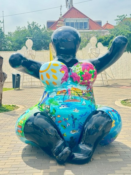 We walked through many streets and located the colorful steps of the Otrobanda stairs. These colorful steps first came to life during the Kaya Kaya Festival in 2018, an annual community-driven art event in Otrobanda. Local artist Avantia Damberg transformed these once ordinary stairs into a joyful kaleidoscope of geometric patterns and vivid hues. She aptly named her creation “Colorful Steps” or “Otrobanda.”