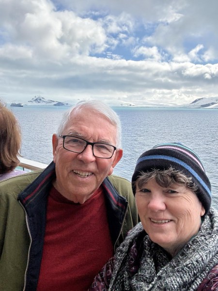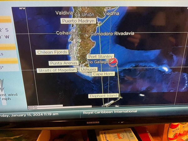 We were at sea all day yesterday planning our trip to Port Stanley, Falkland Islands. This is the port we had to skip in order to make our trip to Antarctica before the storm hit. That was a success even with the rough crossing through Drakes Passage. However as we arrived this morning to Port Stanley the winds were too high for us to tender. Most places we have a port we can dock at and tie up. In these float out of the way places or locations with protected reefs we have to anchor or hover the ship out I. The ocean and send passengers in by life boat. The maximin wind strength is 25 mph to operate the tenders. We were at 40 mph this morning so sadly we won’t get to see Falkland Islands or king penguins. Very thankful the captain is keeping us safe.
