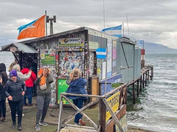 We took two tours today. One on land and one on a boat. Our land tour took us through some beautiful countryside with snow capped mountains as far as you can see. A beautiful place for sure. We were headed to Terre del Fuego National Park. As soon as we entered those gates, our interest shut off! This is how rural this place can be. We stopped at a post office on the water to mail some post cards from the end of the world and view the lake that’s part of the beagle channel. They say the post cards take about 21 days to reach their destination. After all they are coming from the end of the world! With the long line and not a lot of time we decided not to send one.