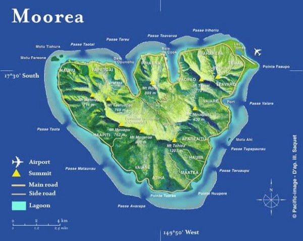 We saw some beautiful sights at Belvedere Lookout. With excellent views of the Opunohu Valley, plus the Cook and Opunohu Bays. From this vantage point we were able to see how those two inlets give Mo’orea its trident shape. See the map below.