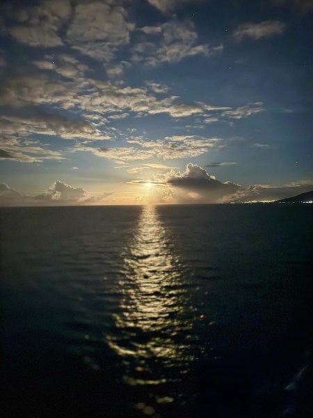 It will be a quick trip to go the 28 mi (45 km) to get to Papeete overnight, we may be circling the seas a bit while we sleep.