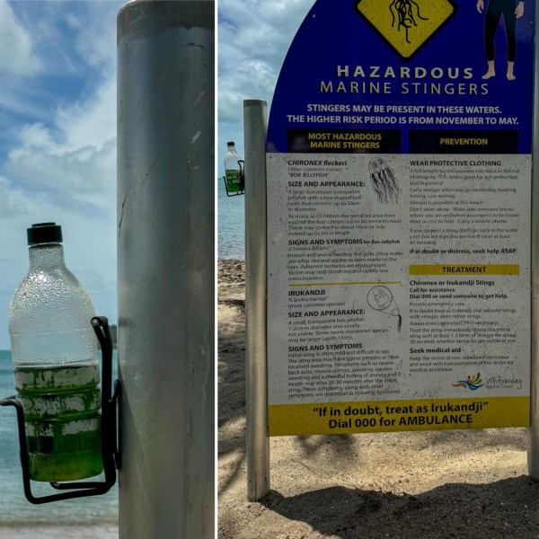 Back to the stingers. They are called Box Jellyfish because they are square, 30 cm in diameter (almost a foot) and about 15 ribbon like tentacles on each side of the “box” making up to about 60 stinging tentacles. This is why they build the fresh water lagoon. It’s actually a lagoon like swimming pool. Very pretty.