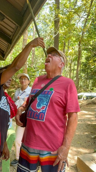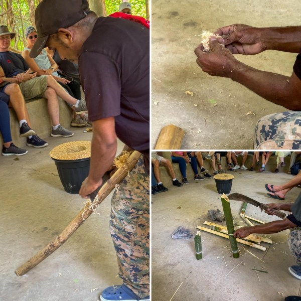 Following the dance, we had the privilege of learning some essential survival skills from the Aeta themselves. They demonstrated the art of building a fire using just bamboo sticks and with “green” bamboo, he cut it and squeezed water from the stalks into many of the tourist open mouths.