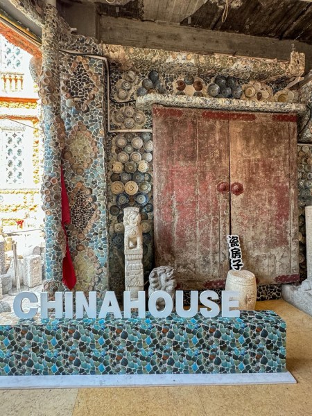 He used 13000 pieces of ancient porcelain wares and vases, more than 300 pieces of ancient stone statues, more than 300 pieces of stone lions from all the dynasties, more than 300 Ming and Qing porcelain cat pillows, more than 20 tons of natural crystal and agate, etc. Without blueprint and relying on his own imagination, Mr. Zhang.LianZhi, in a unique way, has made a perfect combination of his lifetime porcelain collections with the Western architecture.