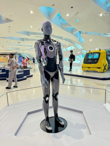 Next, we ventured to the Museum of the Future, a unique museum focused on the future rather than the past. The stainless-steel, donut-shaped exterior was etched with Arabic calligraphy and housed exhibits on potential future technologies in healthcare, space travel, and climate change solutions. We even got to experience a VR recreation of the Amazon rainforest and chat with a robot!