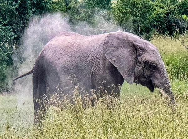 African Bush Elephants, those gentle giants, lumbered through the landscape of thick bushes. A different contrast to the flat grassy land of Maasai Mara. Many different bird species were spotted, even an African eagle, although not as majestic as the one in the USA. More baboons and a Vervet monkey as well. He was a pretty white/creamy color with a black face.