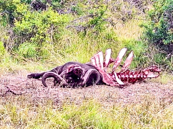 As the skies started to clear and we moved on, we spotted a hulking Cape Buffalo staring us down. Even the rain wasn’t stopping him. Our exploration also led us to a somber yet important place: a graveyard with headstones marking the final resting place of rhinos who had fallen victim to poaching or otherwise died of old age.