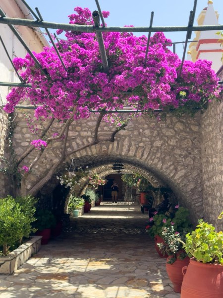 We didn’t see much police presence. Much of this due to very low crime activity. Our day began with a visit to the Monastery of Virgin Mary, an Orthodox church perched on a cliffside. The views from here were breathtaking, offering a glimpse of Albania across the water. In all of Greece there are approximately 1 million Albanians working.