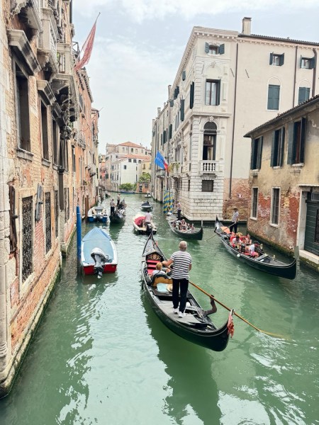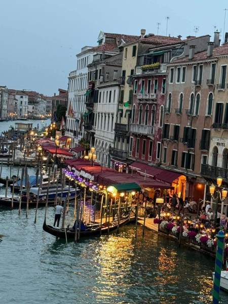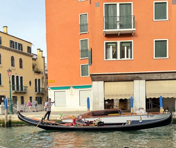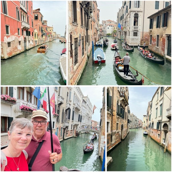 Such a wonderful opportunity to be in Venice again. This will be day one of our two-day adventure in this romantic city. We opted to ditch the traditional route of walking today and explore by private water taxi, zipping through the charming canals lined with colorful palazzos (buildings). The cool splashing of water and the calls of the gondoliers added to the atmosphere, making us feel like characters in a classic Italian film. Reminded me of the movie “The Italian Job” except no money fell through this boat!”