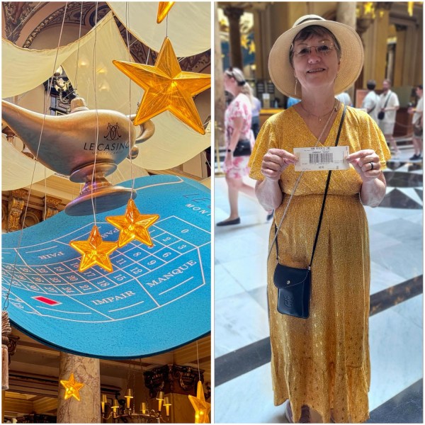 Time seemed to fly and soon it was on to the main event: Monte Carlo and its world-famous casino! With doors opening precisely at 2 pm, we arrived just in time to experience the thrill firsthand. Since we are big spenders here, we set a limit of $10 each, embracing the experience more than the potential winnings. Lady Luck wasn’t on our side this time, but the atmosphere was electric! To commemorate the day, I snagged a fun souvenir – a key ring adorned with a casino chip, a perfect reminder of our glamorous Monaco adventure.
