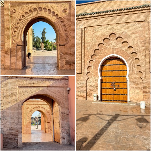 Day two was a whirlwind tour of Marrakesh’s historical gems. (8 miles of walking for both days!) The towering Koutoubia Mosque, a 12th-century masterpiece of Almohad architecture, dominated the skyline. We were mesmerized by the intricate details on its minaret.