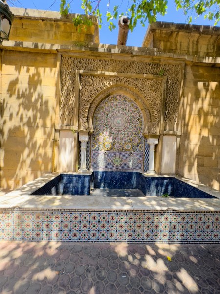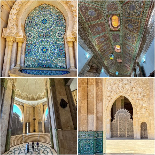 We saw so many mosques and palaces on this trip that I had to sort the pictures to remember which was which! Our first stop was the iconic Hassan II Mosque, the world’s third-largest mosque and a truly awe-inspiring structure. Completed in 1993, it’s a stunning example of Moroccan craftsmanship. The intricate details on the tilework were mesmerizing. The minaret, towering 688 feet, was the world’s tallest when built and is still the second tallest today. We learned that at dusk, a laser beam projects from the minaret’s summit, reaching 18 miles towards Mecca. That would have been cool to see!