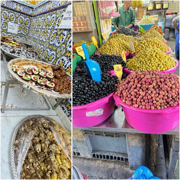 Wandering the city on foot, we stumbled upon the oldest shop in Casablanca, a treasure trove of Moroccan sweets and crumbly cookies. Perfect for an afternoon treat later and a few for now. Our local guide then took us off on a market adventure, where overflowing mounds of olives in every color and flavor awaited. This is what we remember when we talk about our previous days here. We tasted our way through the selection of green, brown, black and red olives.