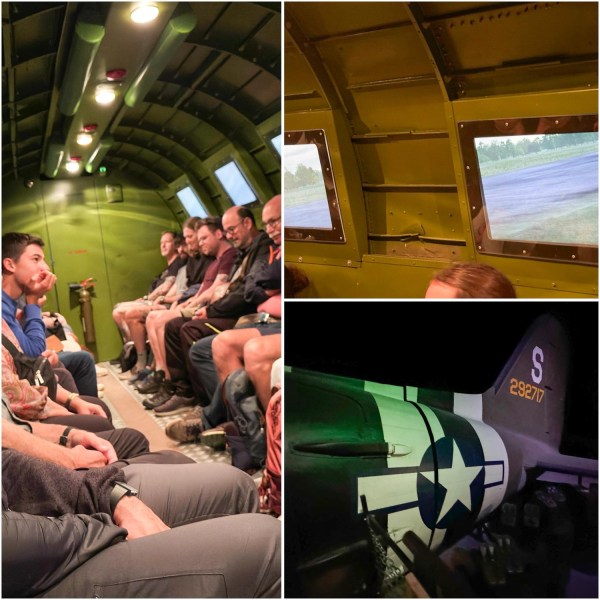 We climbed inside the plane (simulator) and buckled-up our seatbelts for the ride. Looking out the windows (videos with a powerful visual narrative) brought the courage of the Allied forces to life with vivid detail, offering crucial context to the events that unfolded.
