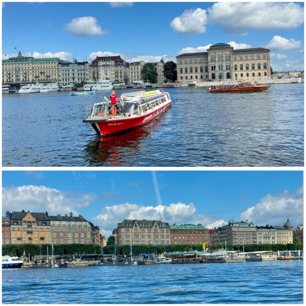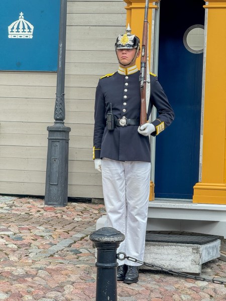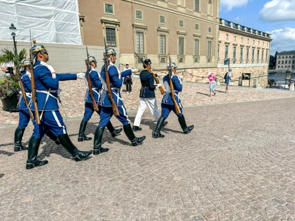 Next, we witnessed the iconic Changing of the Guard ceremony at the Royal Palace. The spectacle of hundreds of soldiers in traditional uniforms, accompanied by a cavalry unit and a band, was truly impressive, but we had a hard time seeing with all the crowds. I tried holding my 360 video camera up high. I’m hoping it at least got votes of the horses and riders. The only complaint was that it lasted forever. Too long a ceremony and it happens on a daily basis. The palace, a magnificent Baroque building, and still under construction since our last visit, is the official residence of the Swedish royal family.