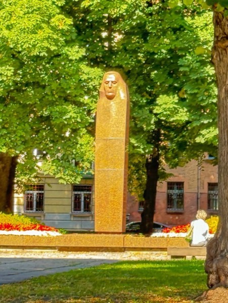 Our walk through Kristijonas Donelaitis Square was a highlight. The towering statue of this renowned Lithuanian poet dominated the square, a testament to his literary contributions.