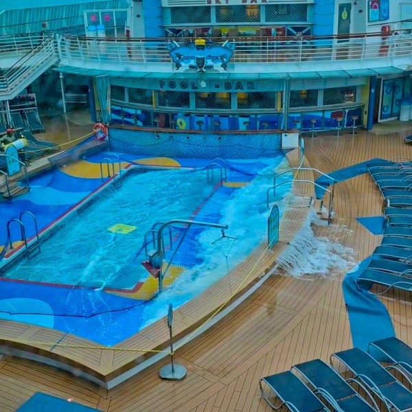 It was a wild ride! The ship was rocking and rolling so much that it was difficult to stand without losing your balance. Holding on to hand rails was mandatory! Dishes and food were flying off the buffet line, and wine glasses were sliding off of guests’ tables, including the crashing of hundreds of stacked plates and glasses (thank goodness they were plastic) waiting on the line.