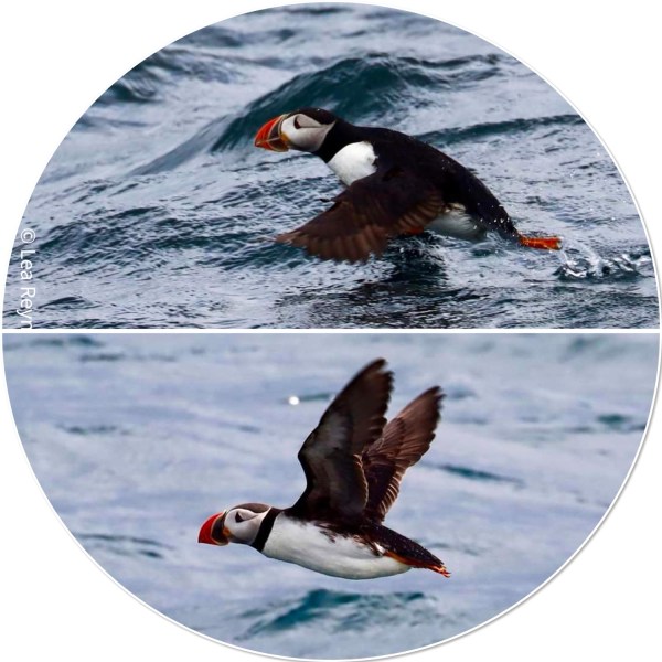 Puffins, also known as “clown of the sea,” are small, colorful seabirds with distinctive black and white plumage and bright red beaks. They are perfectly adapted to life at sea, with webbed feet for swimming and strong wings for flying. These birds are known for their unique feeding habits, diving underwater to catch fish and transporting them back to their nests in their beaks. They carry about half a dozen little fish in their beaks.
